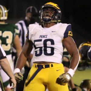 Green is a huge mike in the middle standing 6’2″ and nearly 240 lbs. When the 2021 recruit gets a head of steam then watch out, he shows very good speed and power when making a tackle. I really like how quick his backpedal is for a player his size, and was not expecting him to look as quick considering his size and frame. He does a very good job meeting the ball carrier in the gaps and shows good initial impact but would like see more drive with his legs. Green definitely needs some additional work with changing directions, and just getting quicker in the hips in general. He is a vertical runner who generates a lot of force with each tackle, but also has a tendency of meeting the ball carrier too high. Green had some transfer issues but is now at Prince Avenue. He is up to 250 lbs., and really looking like a dynamic DL playing off the edge that could potentially grow into a 280 lbs lineman at the next level. Playing as a DL is a much better fit, and makes it so Green has to change directions less, and just rely on his impressive top end acceleration.