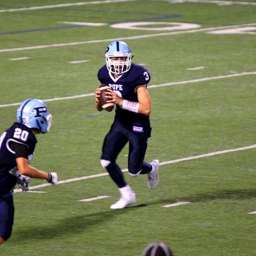 Rickers has moved around in his time at Pope HS. He was part of a QB controversy the last few years, and he showcased his high-character attitude by moving around at various positions. This season he was the starting QB. The 2018 athlete has lowered his 40 time from 4.8 to 4.62 which is very impressive. He is an excellent student. Rickers was a very physical player last season for Pope, making some pretty massive hits. Senior year Rickers has been hitting his big time wide receiver target for long catches this season. Against Cambridge he had a career game. He throws a pretty nice ball, keeps it on a spiral even on the run. Shows a nice touch on the outside and near the redzone. Rickers should certainly attract the interest of smaller schools. He plays tough and runs the ball hard in between the tackles.