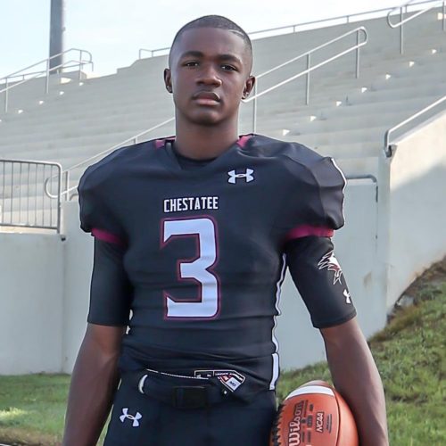 Charles has been a dangerous dual threat QB at Chestatee rushing for over 1000 yards his sophomore year. He has a long slashing running style where he eats up yardage rather quickly. Doesn’t always get a lot of protection, so very quick to take off and run, but at the same time, his senior receiver is one of the leading receivers in the state, so he definitely has the qualities to be a dual threat QB at the next level. Charles is a quick decision maker with the ball in his hands, he can make one juke and get up field quickly. Throwing motion has improved a good bit in the last year, specifically stepping into his throws and shifting weight to his front leg. Showing some real zip while on the move. Charles is definitely an athlete. If playing QB doesn’t pan out then he could definitely play some receiver too. Going against one of the best defense in Marist as a junior he did a pretty good job with a few explosive runs and a long throw. Definitely seems to air the ball out well. Sometime it does hang up, and not sure these ball would pay off in college. As an athlete he has a lot of versatility. Charles 38″ vertical jump and 6’1″ 180 lbs. frame suggest that he could a good college receiver, and we see some similarities to Tobias Oliver who played at Northside Warner Robins a few years back now.