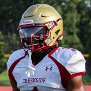 Davis showed good promise his sophomore year at Hughes, and is now at Creekside. The 2022 cornerback has a quick backpedal. He is able to pressure receivers and knock them off their release. Shows pretty strong hands. At 6’1″ and 183 lbs. he has very good size at corner, his physicality suggests nice upside as a boundary corner. He has above average size and good acceleration attack the offense. Davis has a good frame and should continue to add weight and be around 200 after a few years in college. Davis plays with a physical mindset and is looking to dominate his opponent. He is a heads-up player and does a nice job getting his head around to attack the pass. Hip quickness and short space agility is just okay, and wonder if safety is a better fit at the next level. Not much film his senior year yet, but he is getting some reps at receiver.