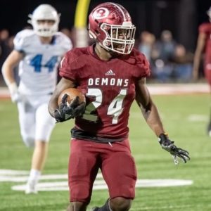 Warner Robins is now a run heavy team and taking the brunt of the snaps is the low bowling ball type of back Rutherford. He gets very low when running between the tackles and nearly disappears on film at times. Very good leg drive and determination to extra yardage. Rutherford is a solid back who will definitely get D1 interest, but doesn’t show the explosion to pick up big chunks at the next level even. Excellent running vision recognizing the hole and exploding through to get max yardage on any play.