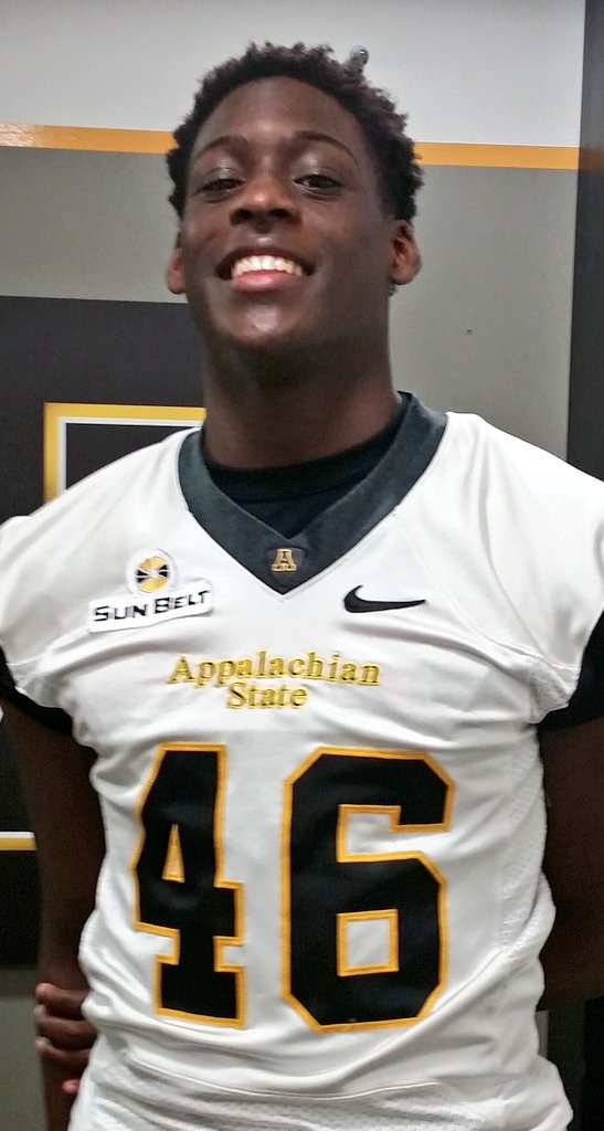 I give my all for the team. My coach says I have a good work ethic and that I don't stop until I get it right. I've been contacted by Tennessee, Charlotte (visited in Spring), Appalachian State (visit Oct 3) and Clemson (visited Sept 5). I'm a leader and will always have my teammates back in any situation.